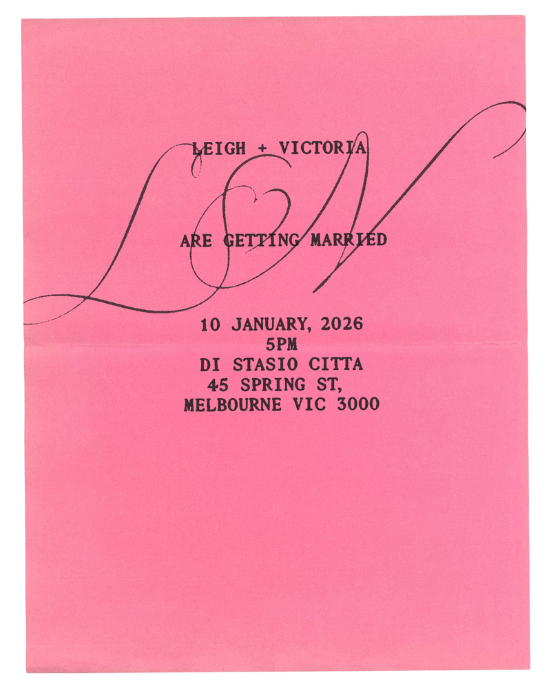 Leigh and Victoria, together with their families, invite you to join them in celebrating their wedding day.